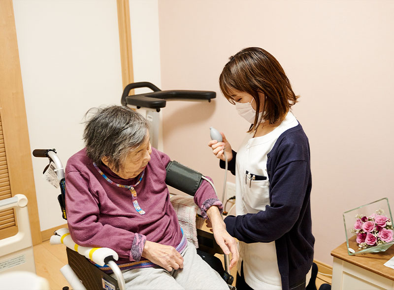 胃ろう・CVポート・たん吸引・気管切開・尿道カテーテル・人工肛門・末期がん等各種医療行為に対応。医療度の高い方でも安心してご入居いただけます。